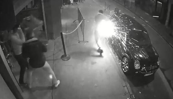 Đoạn clip ghi lại sự cố hy hữu, do một camera an ninh bên ngoài hộp đêm quay, đang được chia sẻ chóng mặt trên mạng. Nguyên nhân sự cố chưa được công bố, nhưng nhiều người cho rằng nó có liên quan đến pin của thuốc lá điện tử.