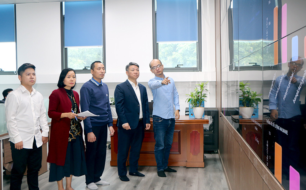 Lãnh đạo Trung tâm Chuyển đổi số kiểm tra hoạt động tại Trung tâm Giám sát an toàn không gian mạng.