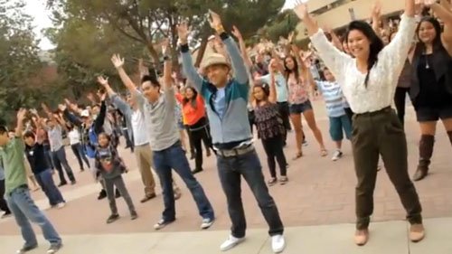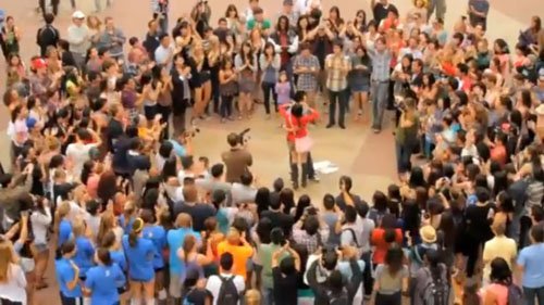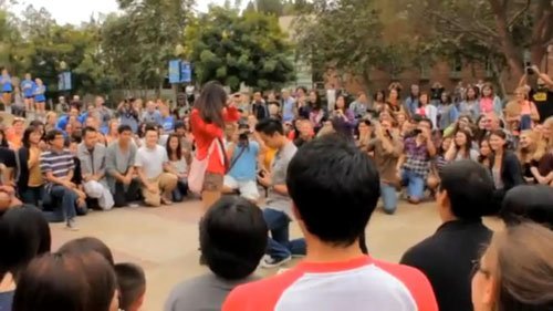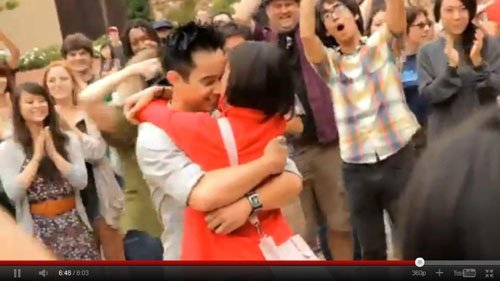 Chàng trai nắm tay, đưa cô gái đến nơi hai người gặp nhau lần đầu, đó là một sảnh nhỏ trong khuôn viên trường ĐH California. Đôi trẻ vừa xuất hiện thì mọi người bắt đầu trình diễn flashmob dưới sân. Chàng trai cũng hòa vào điệu nhảy trên nền nhạc "I can't take my eyes off you" sôi động.
