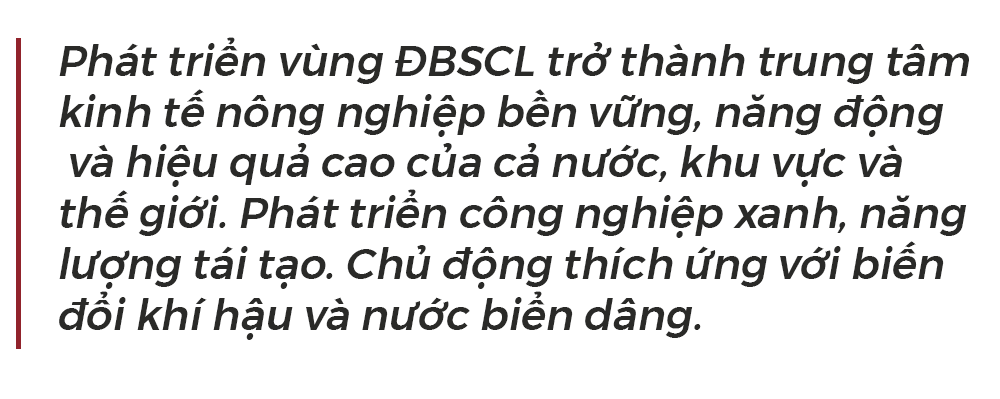 Nghị quyết cũng xác định rất rõ mục tiêu tổng quát và một số chỉ tiêu cụ thể đến năm 2030, tầm nhìn đến năm 2045. Phấn đấu đến năm 2030, vùng đồng bằng sông Cửu Long sẽ là vùng sinh thái, văn minh và bền vững, mang đậm bản sắc văn hóa sông nước. Đến năm 2045, trở thành vùng phát triển toàn diện, sinh thái, văn minh và bền vững, mang đậm bản sắc văn hóa sông nước; có trình độ phát triển khá so với cả nước; cơ sở hạ tầng kinh tế-xã hội đồng bộ, hiện đại.