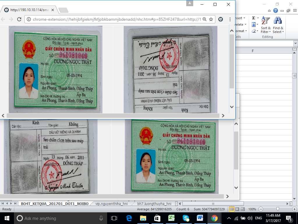 Cụ thể đối với 6 thuê bao là: 841299873189, 841299856027, 841299862934, 841299849405, 841299867465, 841299842677 có cùng ảnh chứng minh nhân dân giả có tên là Nguyễn thị Vi (2 chứng minh nhân dân giống hệt nhau, chỉ khác nhau số CMND). Hoặc đăng ký thông tin cho 96 thuê bao dưới danh nghĩa của tổ chức nhưng không có ảnh chứng minh nhân dân hoặc tương tự đăng ký cho 53 thuê bao nhưng ảnh chứng minh nhân dân chỉ có một mặt. Đặc biệt có doanh nghiệp chỉ trong tháng 1/2017 đã sử dụng nhiều người đại diện đứng tên để đăng ký thông tin cho 36.026 thuê bao.