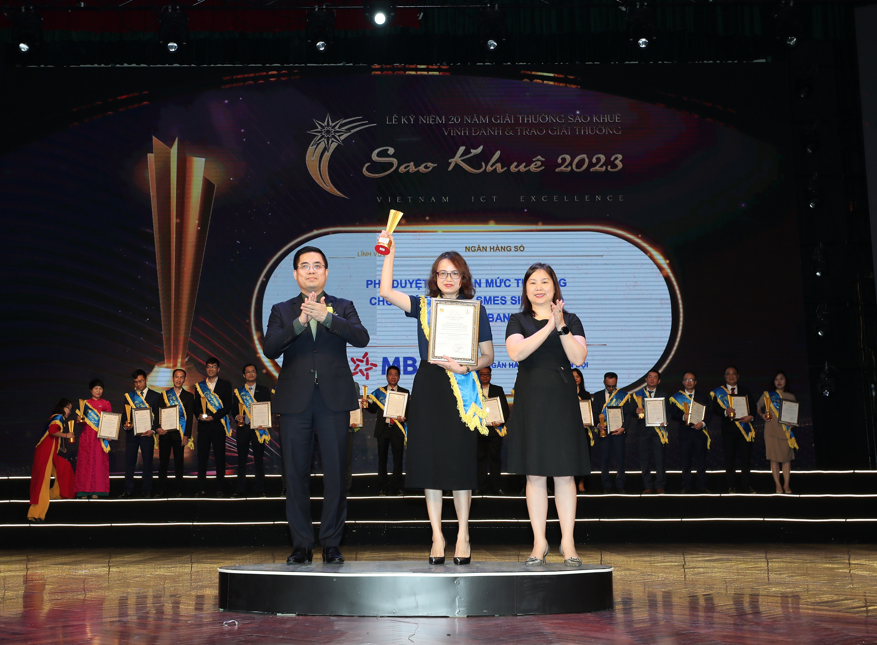 Mới đây, tại Lễ trao giải Sao Khuê 2023, tính năng Phê duyệt cấp hạn mức tự động nền tảng BIZ MBBank là một trong hai sản phẩm của MB đã được vinh danh. Sản phẩm được kỳ vọng sẽ mang đến cho cộng đồng doanh nghiệp những trải nghiệm tốt nhất trong số hóa dịch vụ tài chính, khẳng định vị thế tiên phong của MB trong hành trình chuyển đổi số ngành ngân hàng.