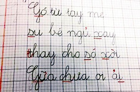 Nòng nợn nuộc, lước lào, thiếu lữ... và vô số lỗi chính tả khác của học trò.