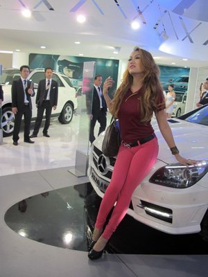 Sự xuất hiện của ca sĩ "Da nâu" đã thu hút được sự chú ý của các anh em phóng viên báo giới tham gia triển lãm. Phi Thanh Vân là một trong nhiều “chân dài” xuất hiện bên cạnh các siêu xe tại Triển lãm ô tô Việt Nam lần thứ 8. Dưới đây là những hình ảnh "chân dài" xuất hiện bên cạnh các siêu xe trong buổi triển lãm sáng 26/9