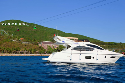 sang AQUABUS 44 của khu nghỉ dưỡng Vinpearl Luxury Nha Trang neo chờ. Lên chiếc