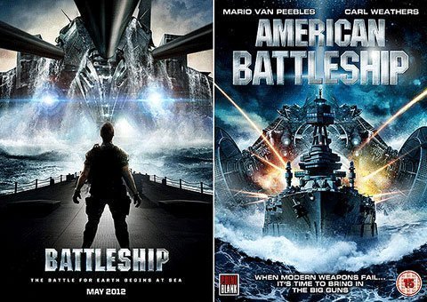 Sau khi bỏ hơn một trăm triệu USD để sản xuất “Battleship” (Chiến hạm, phát hành tại VN từ ngày 13.4), cộng thêm 30 triệu USD để quảng cáo, Universal tá hỏa khi phát hiện Global Asylum cũng tung một bộ phim na ná từ cái tựa “American Battleship” (Chiến hạm Mỹ quốc) đến hình ảnh poster.