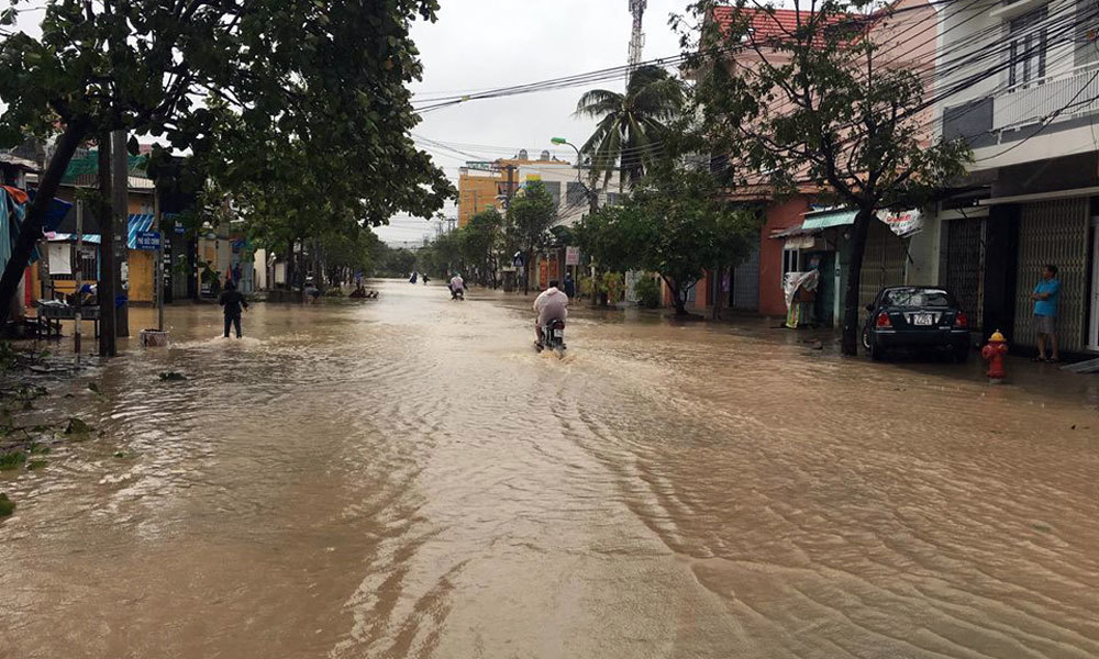 Tuyến đường Hùng Vương đoạn tiếp giáp với ngã 3 Long Vân, phường Trần Quang Diệu (TP Quy Nhơn) nước lũ ngập sâu gần 1m nên xe máy, ô tô gầm thấp đều không qua lại được. Mọi giao thương (ngoại trừ xe trọng tải lớn, ô tô khách) đều trông cậy vào sõng, song việc đi lại không dễ dàng, tiềm ẩn nhiều nguy hiểm.