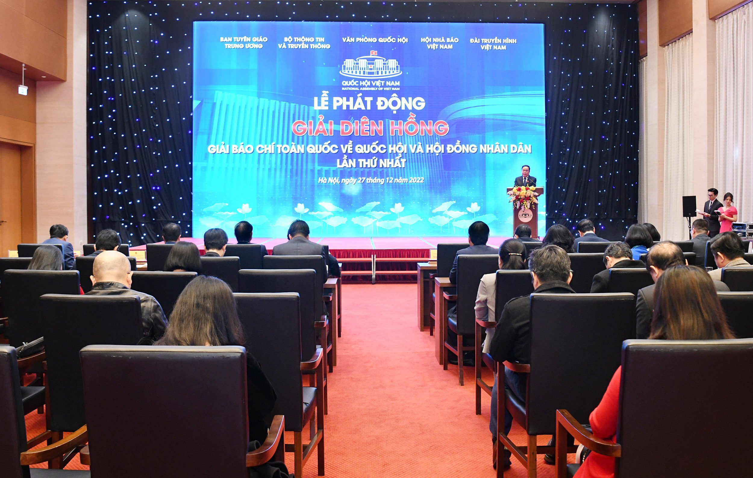 Trong không khí nhân dân cả nước đang hân hoan chuẩn bị đón chào năm mới 2023 và Tết cổ truyền Quý Mão; kỷ niệm 77 năm Ngày Tổng tuyển cử đầu tiên bầu Quốc hội Việt Nam (06/01/1946 - 06/01/2023); hôm nay, Văn phòng Quốc hội chủ trì phối hợp với Ban Tuyên giáo Trung ương, Bộ Thông tin và Truyền thông, Hội Nhà báo Việt Nam, Đài Truyền hình Việt Nam tổ chức Lễ phát động Giải Diên Hồng, Giải báo chí toàn quốc về Quốc hội và Hội đồng nhân dân lần thứ nhất. Được sự phân công của Chủ tịch Quốc hội Vương Đình Huệ, thay mặt Đảng đoàn Quốc hội, Ủy ban Thường vụ Quốc hội, tôi nhiệt liệt chào mừng và trân trọng cảm ơn các đồng chí Lãnh đạo Quốc hội, thành viên Ủy ban Thường vụ Quốc hội, Ban Chỉ đạo, Ban Tổ chức Giải Diên Hồng, lãnh đạo các bộ, ban, ngành, đoàn thể, cơ quan, tổ chức ở trung ương và địa phương; phóng viên của các cơ quan thông tấn, báo chí đã đến tham dự Lễ phát động. Xin gửi tới các đồng chí lãnh đạo, đại biểu khách quý lời chúc mạnh khỏe, hạnh phúc và những lời chúc mừng tốt đẹp nhất.