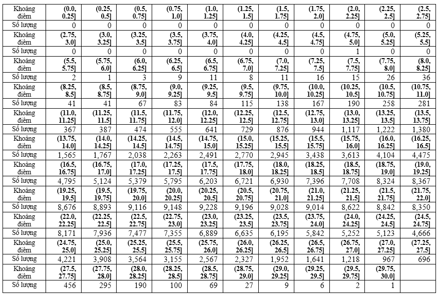 Dưới đây là phổ điểm khối A1 thi tốt nghiệp THPT năm 2022: