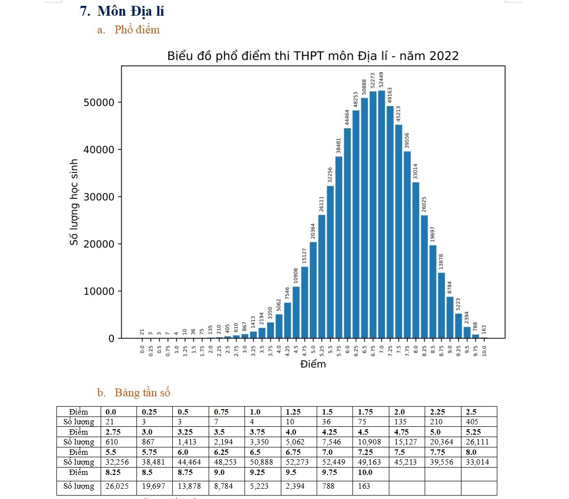 Sau đây là phổ điểm môn Địa lý thi tốt nghiệp THPT năm 2022: