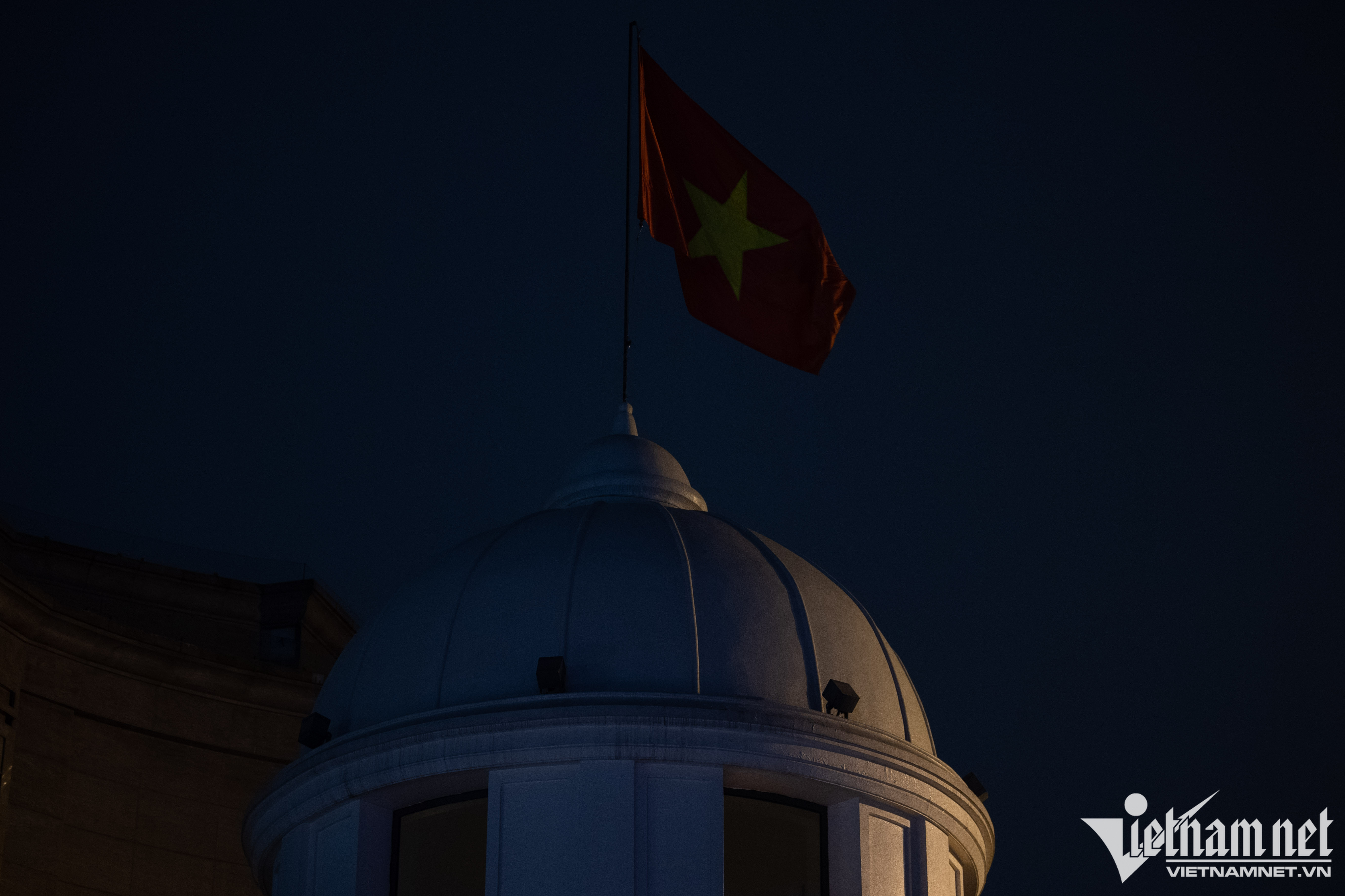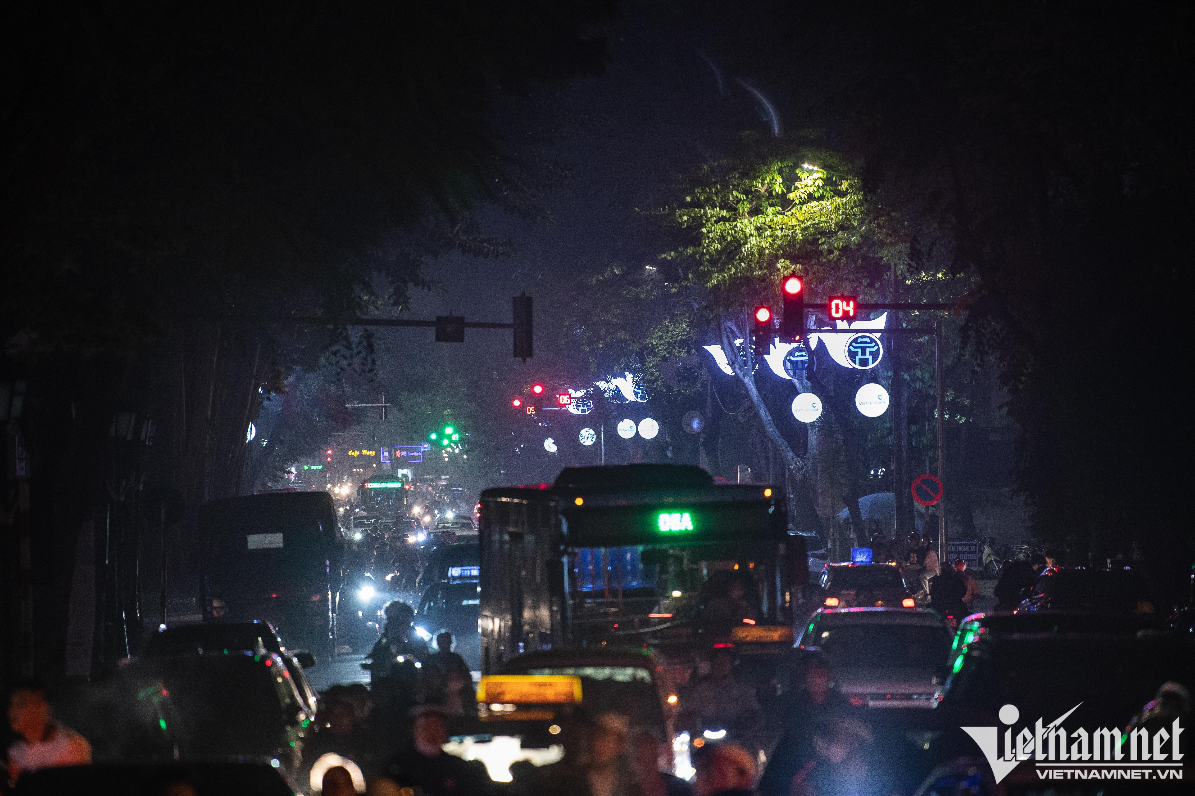 Sau 1 giờ tắt đèn, các ngôi nhà hai bên tuyến phố trung tâm thủ đô lại bật đèn sáng dần.