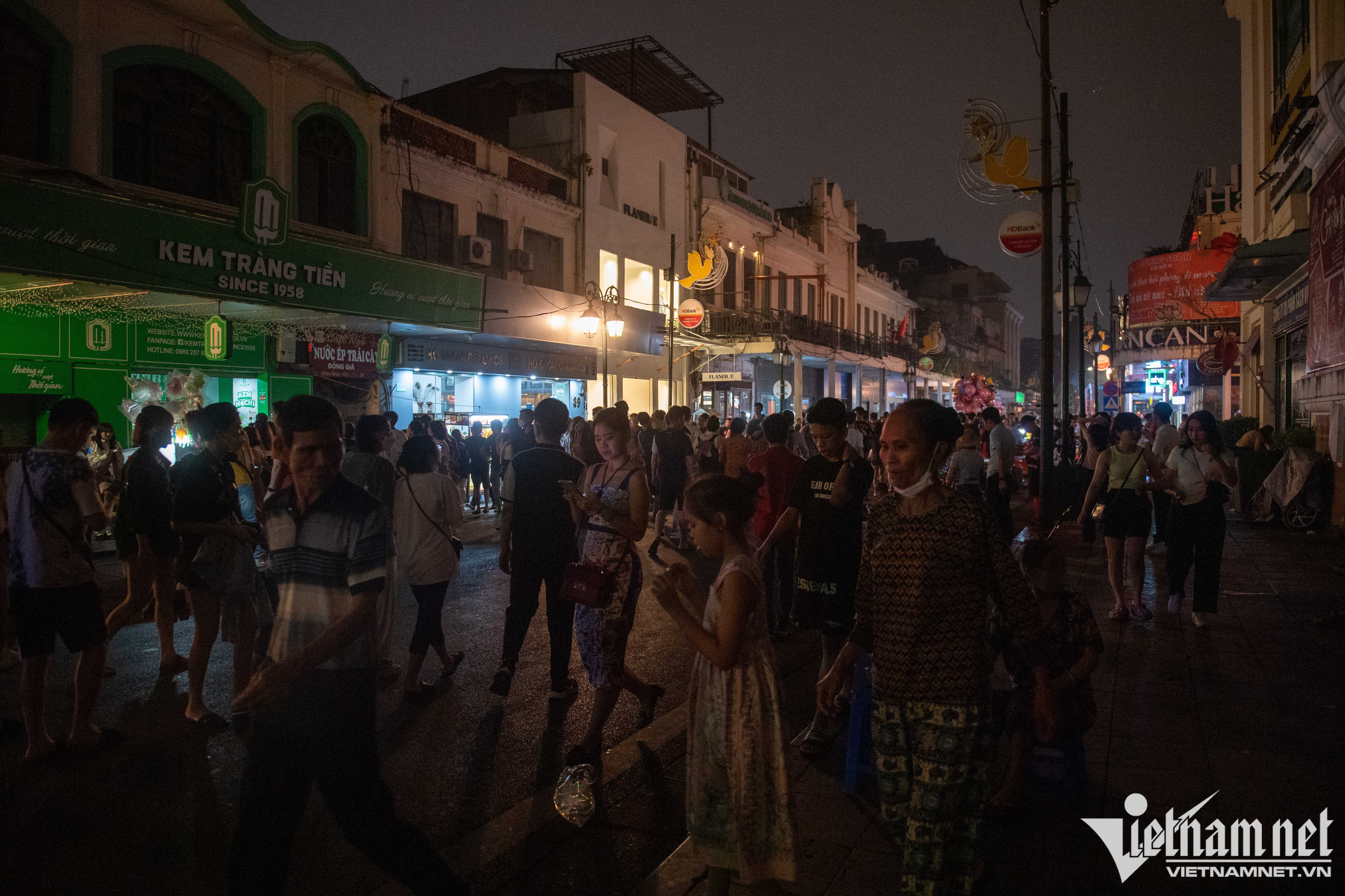 Trong khoảng 1 tiếng tối 25/3, hàng trăm người dân thủ đô dạo chơi trong khung cảnh tối đen tại các tuyến phố đi bộ quanh hồ Hoàn Kiếm.
