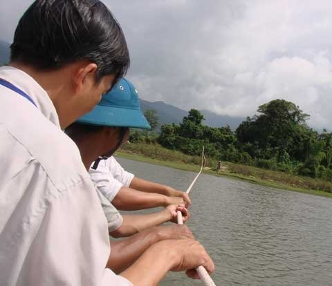 Ngày thường, nước sông Re có vẻ hiền hòa, nhưng vào những ngày mưa, dòng sông chẳng mấy chốc trở đã trở nên hung dữ, sẵn sàng nhấn chìm mọi thứ. Nói là "đu dây", thực ra người dân đi trên một chiếc bè tự tạo bằng những miếng ván ghép lại, được đặt trên những ruột ô tô bơm căng, sau đó lần theo sợi dây để qua sông…