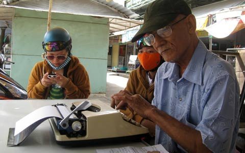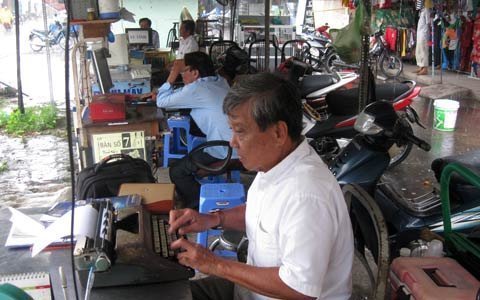 Ngày nay, trước sự phát triển của CNTT, người ta thường thảo đơn bằng máy vi tính hiện đại, nhưng ở khu phố này vẫn duy trì được kiểu đánh văn bản bằng máy chữ lạc hậu này.