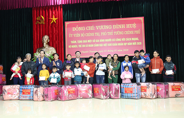 Cũng tại huyện Nam Đàn, Phó Thủ tướng Vương Đình Huệ, Trưởng Ban Chỉ đạo các Chương trình mục tiêu quốc gia và Bộ trưởng Đào Ngọc Dung, Phó Trưởng Ban thường trực và lãnh đạo tỉnh Nghệ An đã tới thăm gia đình thương binh nặng Đào Đức Toàn (sinh năm 1941); thăm và tặng quà là chăn ấm, tiền mặt và bánh kẹo cho 45 gia đình khó khăn, gia đình chính sách, 15 em học sinh có hoàn cảnh đặc biệt khó khăn và Mẹ Việt Nam Anh hùng Trần Thị Châu ở huyện Thanh Chương nhân dịp bước vào năm mới 2020.