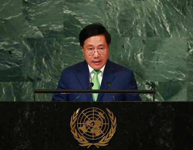 Ngày 24/9, tại trụ sở Liên Hợp Quốc (LHQ), New York, Mỹ, Phó Thủ tướng thường trực Phạm Bình Minh đã có bài phát biểu quan trọng tại Phiên thảo luận chung cấp cao Đại hội đồng LHQ khoá 77.