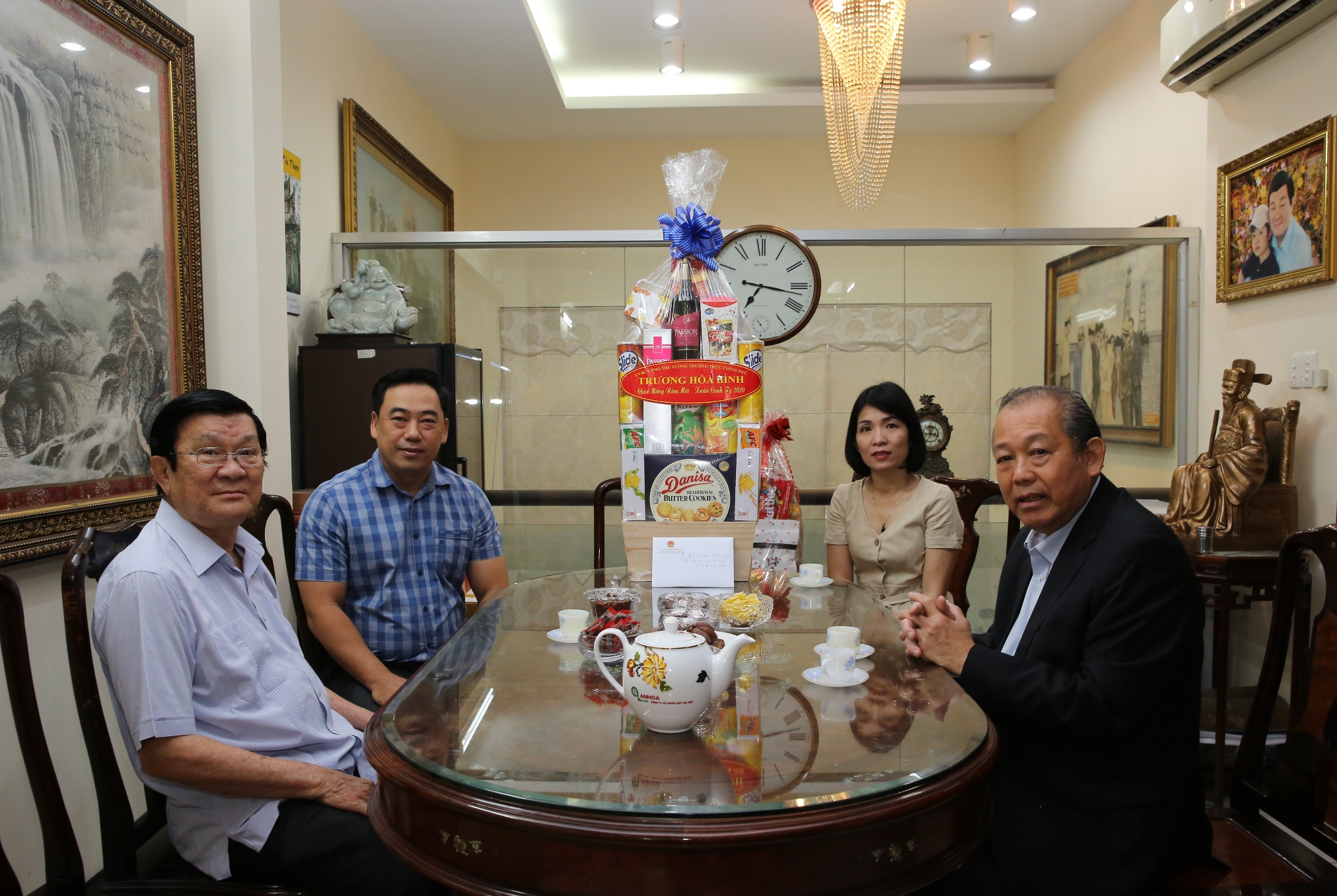 Tại gia đình nguyên Chủ tịch nước Trương Tấn Sang, Phó Thủ tướng Thường trực Trương Hòa Bình ân cần thăm hỏi tình hình sức khỏe, cuộc sống hằng ngày và chúc ông Trương Tấn Sang luôn mạnh khỏe, tiếp tục có những đóng góp vào sự nghiệp xây dựng quê hương đất nước.