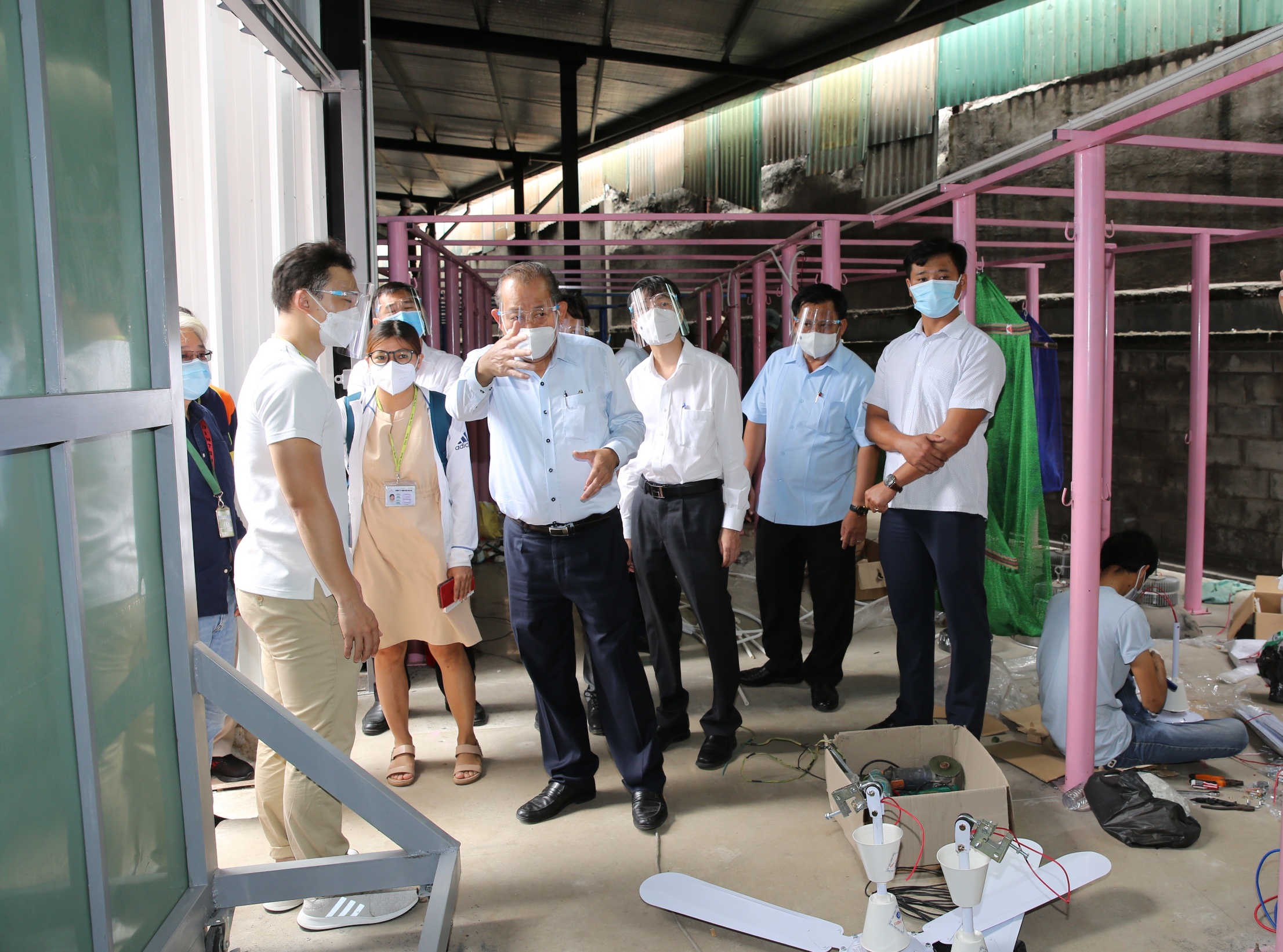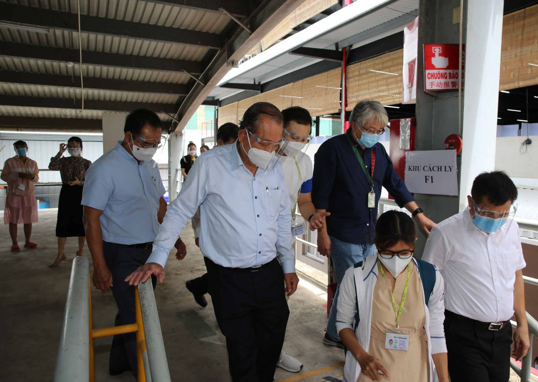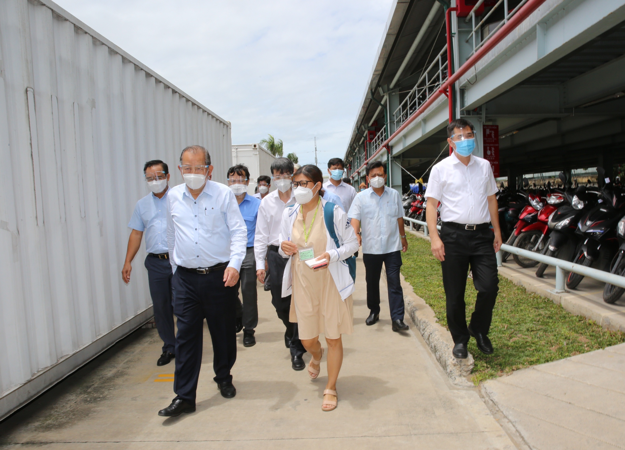 Phó Thủ tướng Trương Hòa Bình thăm nơi đang triển khai làm khu cách ly F1 của Công ty TNHH Din Sen Việt Nam - Ảnh: VGP/Mạnh Hùng |