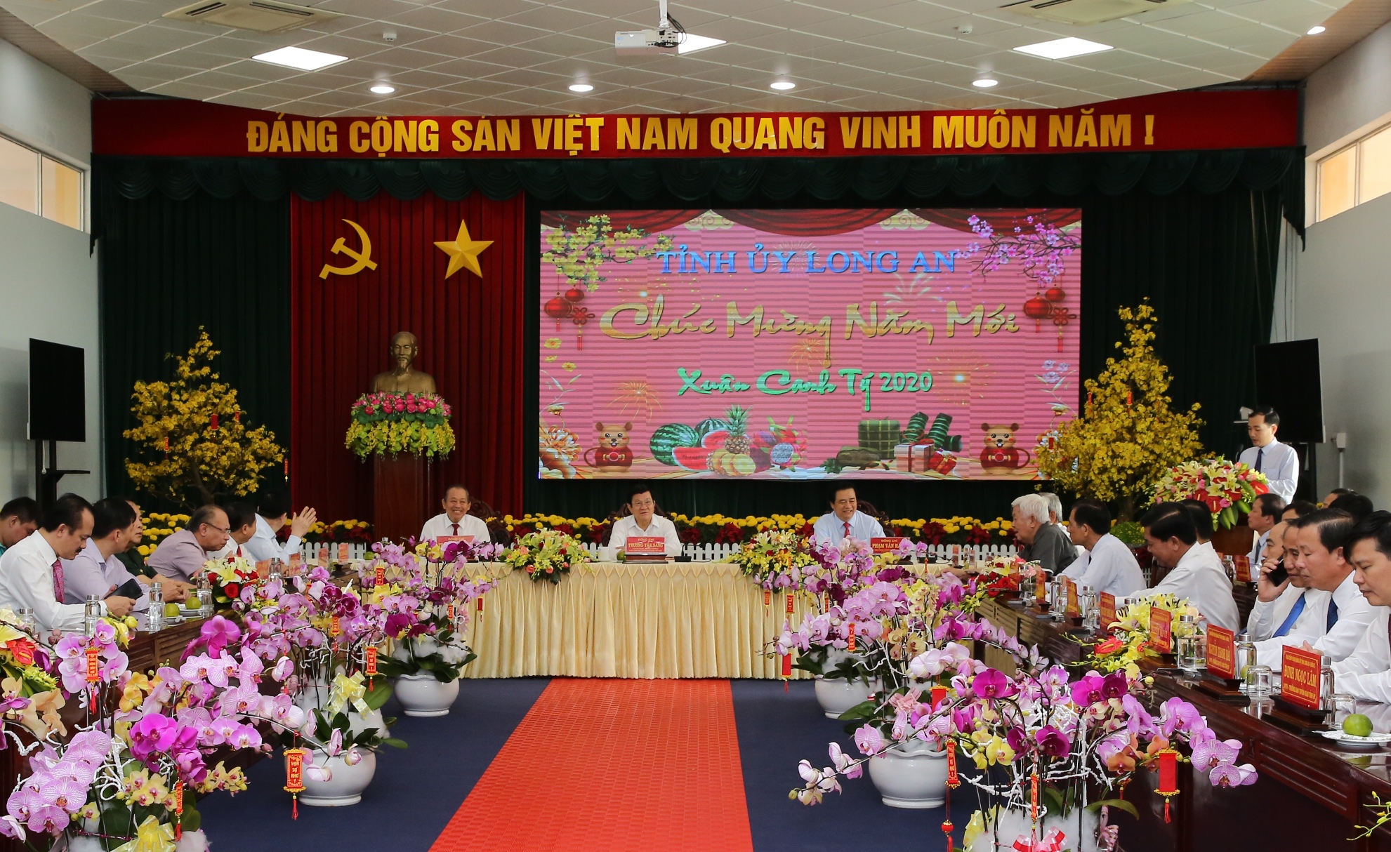 Bí thư Tỉnh ủy, Chủ tịch HĐND tỉnh Long An Phạm Văn Rạnh bày tỏ vui mừng được đón tiếp Phó Thủ tướng Thường trực và nguyên Chủ tịch nước cùng các đồng chí, đồng hương Long An về thăm, chúc tết nhân dân, cán bộ, lực lượng vũ trang tỉnh. Bí thư Tỉnh ủy Long An thông tin với đoàn một số kết quả nổi bật về phát triển kinh tế - xã hội, công tác xây dựng Đảng của tỉnh trong năm qua.