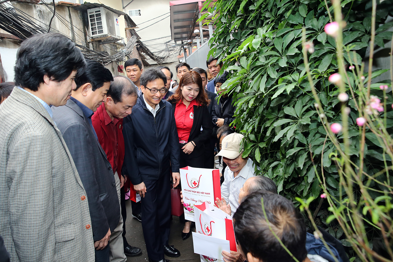 Phó Thủ tướng Vũ Đức Đam trò chuyện, chúc Tết các bệnh nhân tại "xóm chạy thận", ngõ 121, đường Lê Thanh Nghị (quận Hai Bà Trưng) |