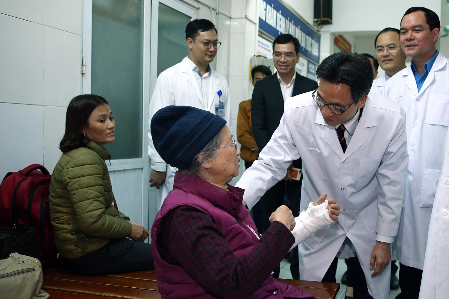 Phó Thủ tướng Vũ Đức Đam trò chuyện với một bệnh nhân cao tuổi tại Bệnh viện Việt-Đức ngày cuối năm |