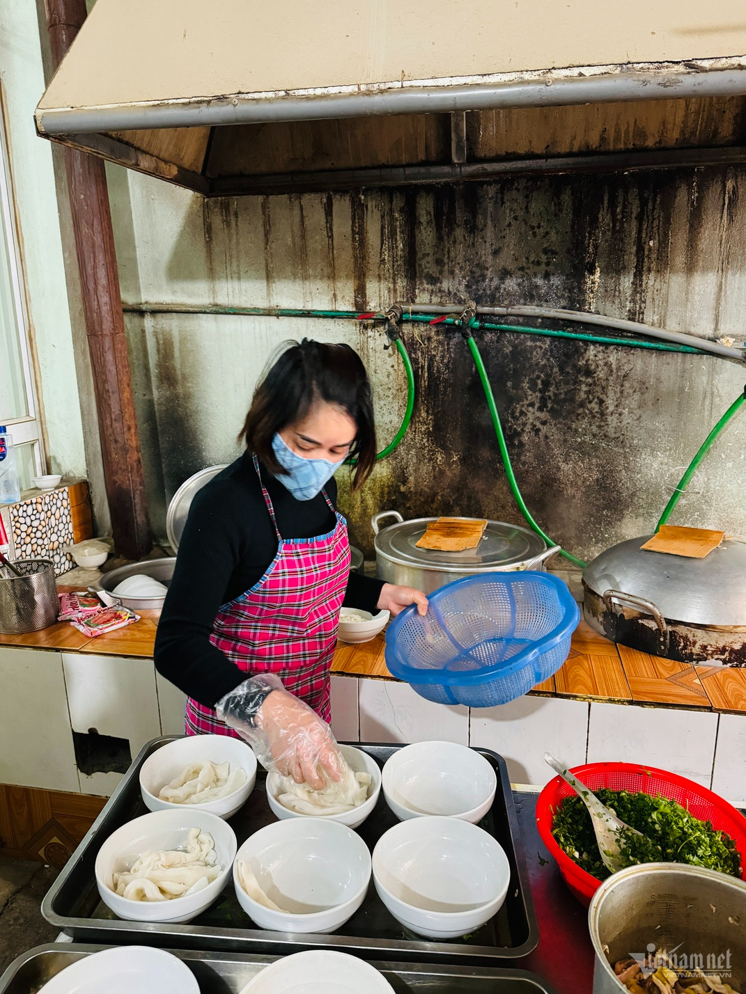 “Bình thường khi làm bánh phở sẽ phải có một công đoạn nữa là khi gỡ bánh phở ra sẽ treo lên sào để khô một cách tự nhiên, rồi sau đó mới gỡ xuống và thái nhỏ. Vậy nên công đoạn này còn được gọi vui là phở đi “hong gió”. Tuy nhiên khi đông khách, mình cũng không kịp phơi lên nữa mà phải phục vụ luôn.”, chủ quán phở chia sẻ.