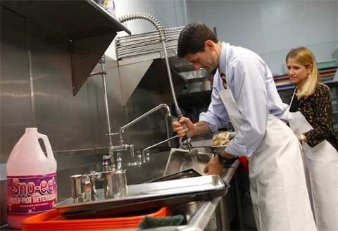 Quá muộn để rửa bát đĩa nhưng Ryan vẫn hào hứng đề nghị rửa những thứ có vẻ không bẩn, Washington Post đưa tin.
