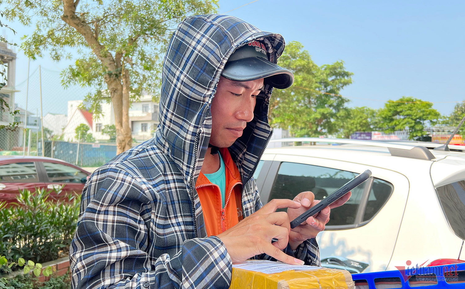 Đang dừng chân ở bóng cây gọi điện cho khách, anh Nguyễn Văn Dũng (SN 2001) cho biết, toàn công ty giao hàng có khoảng hơn 200 người. Hôm nay, anh làm từ 10h đến 18h.