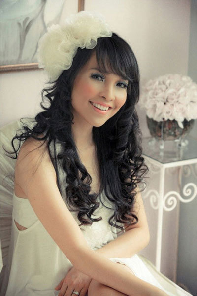 Váy bồng nhiều tầng cùng với nơ cài đầu là phong cách yêu thích của Hiền Thục.