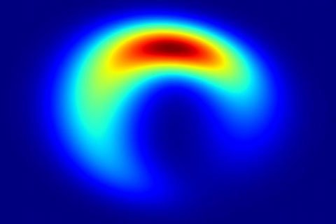 Các nhà thiên văn học lý giải, trung tâm của khối hình lưỡi liềm là một vòng tròn tối đại diện cho bản thân lỗ đen, còn hình lưỡi liềm phản ánh đĩa vật chất quay xung quanh đang bị lỗ đen hút vào bên trong.