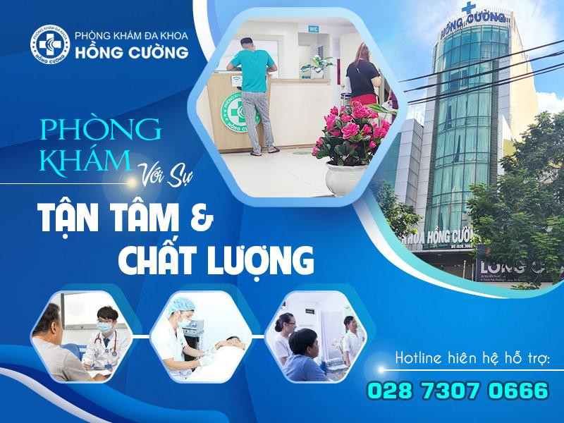 Phòng khám đa khoa Hồng Cường Địa chỉ: 87-89 Thành Thái, phường 14, quận 10, TP.HCM Điện thoại: (028) 73070666 Website: https://dakhoahongcuong.vn/ Thời gian làm việc: Tất cả các ngày trong tuần từ 08h đến 20h (bao gồm lễ, Tết) |
