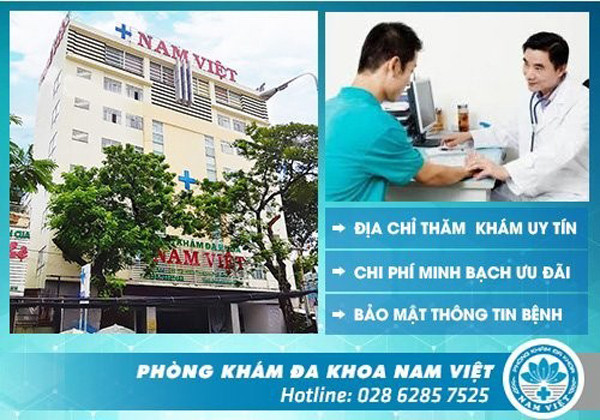 Phòng khám Đa khoa Nam Việt (Được Sở Y tế cấp phép hoạt động) Hotline tư vấn miễn phí: 02862857515 Website: https://phongkhamdakhoanamviet.vn/ Địa chỉ: 202 Tô Hiến Thành, Phường 15, Quận 10, TPHCM |