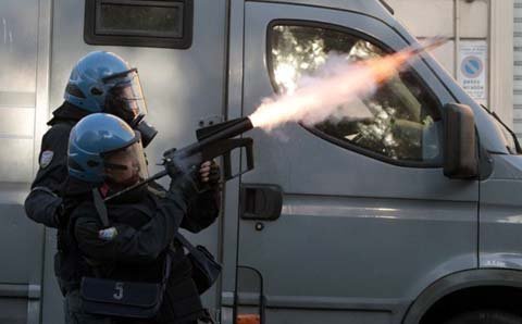 Cảnh sát tại Rome (Italy) phải bắn đạn hơi cay để giải tán đám đông.