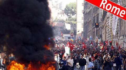 Trong khi đó, tại Italy, cuộc biểu tình đã biến thành bạo động. Cảnh sát đã phải dùng hơi cay, vòi rồng và rùi cui để giải tán đám đông khi một nhóm người đeo mặt nạ đã đập phá cửa hàng, xe cộ trên đường.
