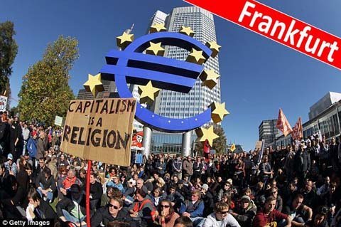 Tại Madrid (Tây Ban Nha), Berlin (Đức), London (Anh), người biểu tình đã tập trung tại trước cửa các ngân hàng và trung tâm tài chính để thể hiện sự bất bình của mình.