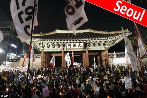 Người biểu tình tại thủ đô Seoul, Hàn Quốc