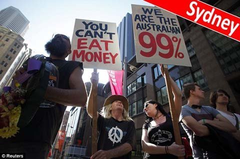 Tại Sydney, khoảng 2.000 người, bao gồm cả đại diện của nhóm Thổ dân, công đoàn và cộng sản đã đứng bên ngoài Ngân hàng Dự trữ trung ương Australia để phản đối.