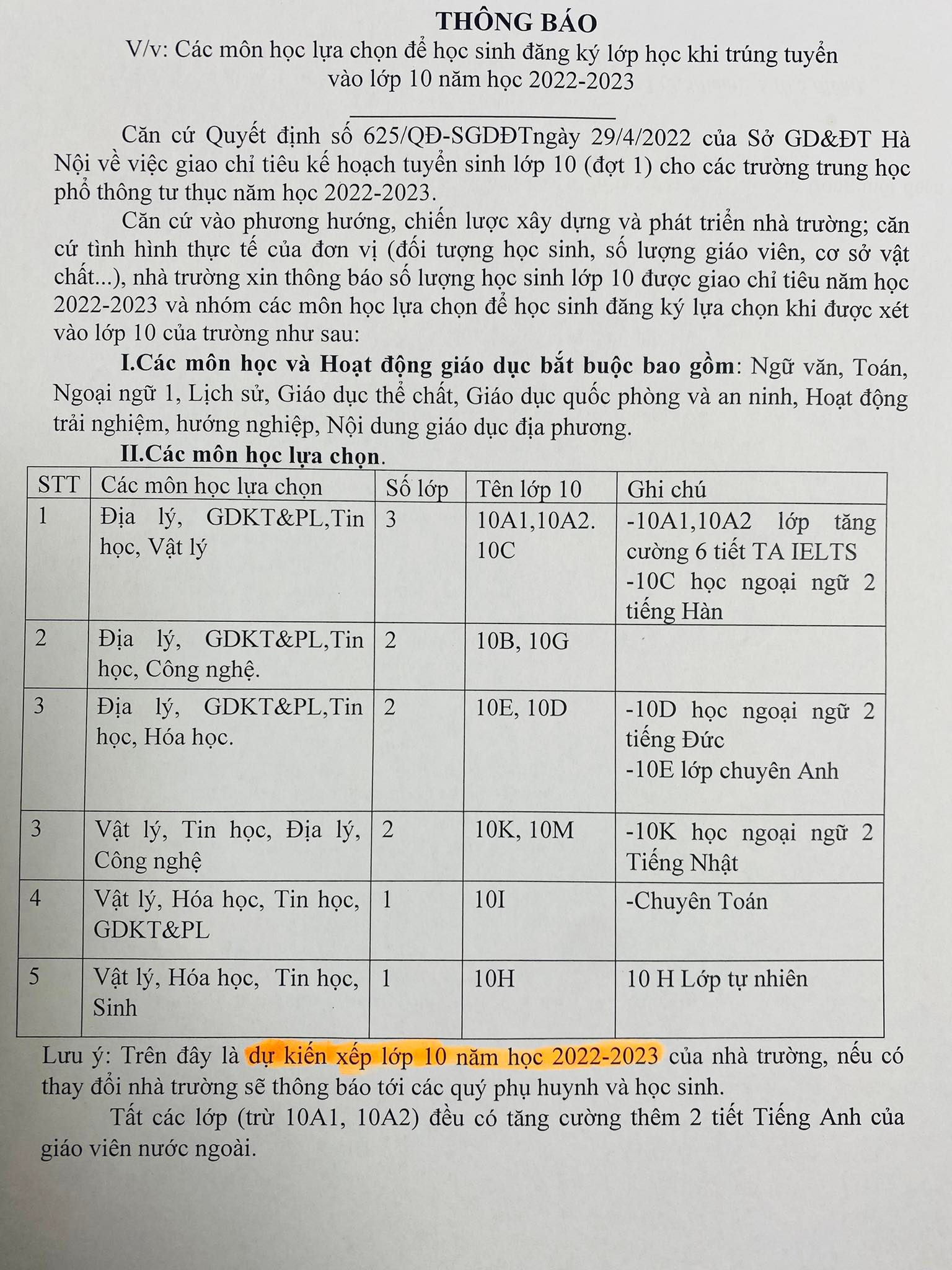 “Nhà trường thông báo có 4 lớp định hướng Khoa học tự nhiên với tổng số 160 học sinh.