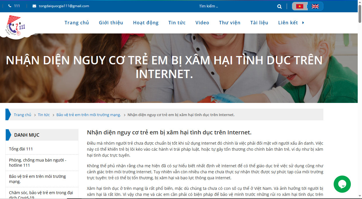 Một thống kê từ Tổng đài Bảo vệ trẻ em 111 cho thấy, gần đây đang gia tăng các cuộc gọi tư vấn, hỗ trợ liên quan đến không gian mạng. Chỉ tính riêng trong 7 tháng đầu năm 2022 đã có 268 cuộc gọi đến tổng đài yêu cầu được tư vấn, trong đó, 31% liên quan tới vấn đề xâm hại tình dục trẻ em trên môi trường mạng, gần 17% liên quan tới việc cần tư vấn khi trẻ em bị dụ dỗ, gạ gẫm.