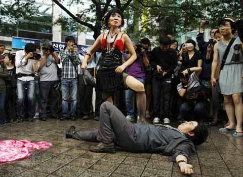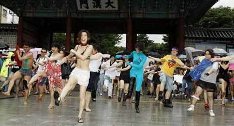 hành động, đã cùng nhảy múa dưới mưa tại trung tâm thủ đô Seoul để làm rõ quan