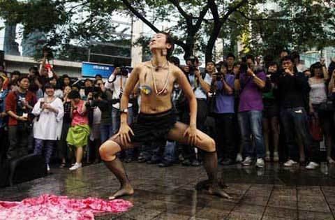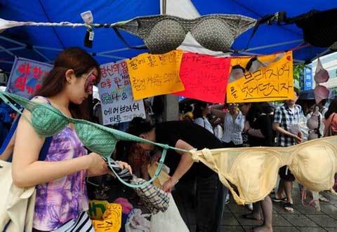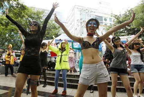 Hàng chục phụ nữ Hàn Quốc mặc những trang phục thiếu vải và đeo