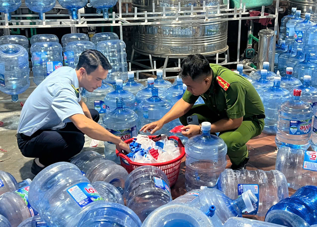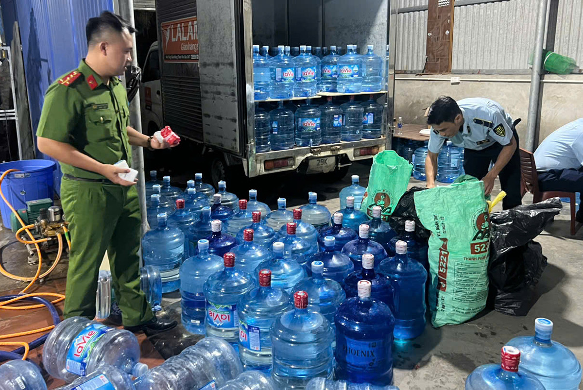 Cơ quan Công an đã phát hiện, bắt quả tang các đối tượng đang dùng vòi bơm nước máy vào các bình Lavie (đã được chuẩn bị từ trước), thu giữ hơn 500 bình nước Lavie giả các loại 19 lít và 18,5 lít.