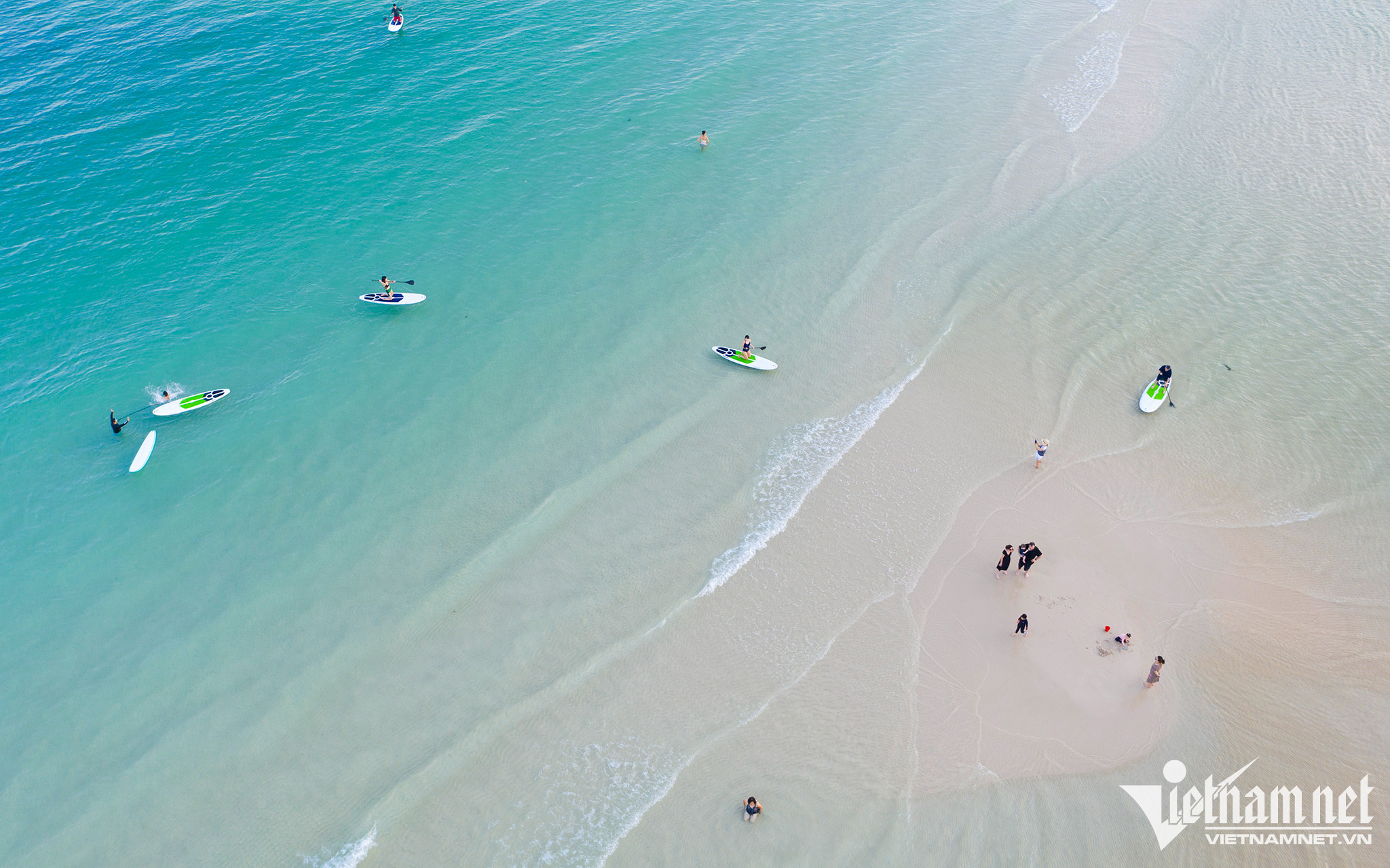 Thời gian đẹp nhất để du lịch Hòn Thơm (An Thới) là từ tháng 10 đến tháng 3, khi đó Phú Quốc rất đẹp, trời xanh, có nắng, thoáng mát, sóng êm, ít mưa. Các khu vực tắm biển như bãi Trào, bãi Nồm, bãi Khem, bãi Sao hay mũi Ông Đội cảnh đẹp nguyên sơ, nước xanh, cát trắng, không kém gì Maldives, lại có nhiều nhà phao nổi, thích hợp với các gia đình có con nhỏ. Ảnh: Quang Ngọc.