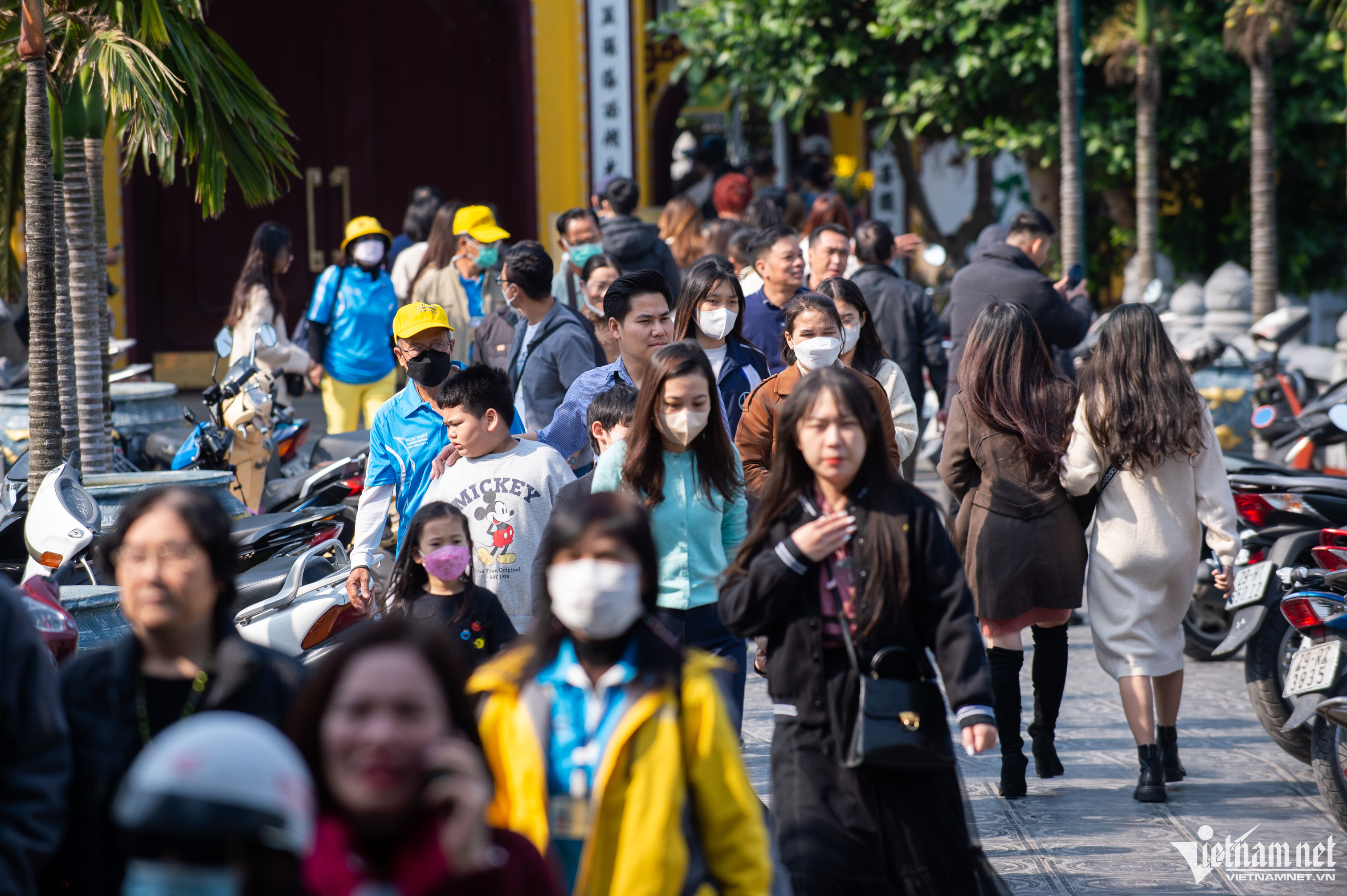Trong ngày mùng 1 cuối cùng của năm Nhâm Dần, nhiều người dân thủ đô đổ về các đền, chùa để làm lễ bái khiến một số nơi trong cảnh đông nghẹt.
