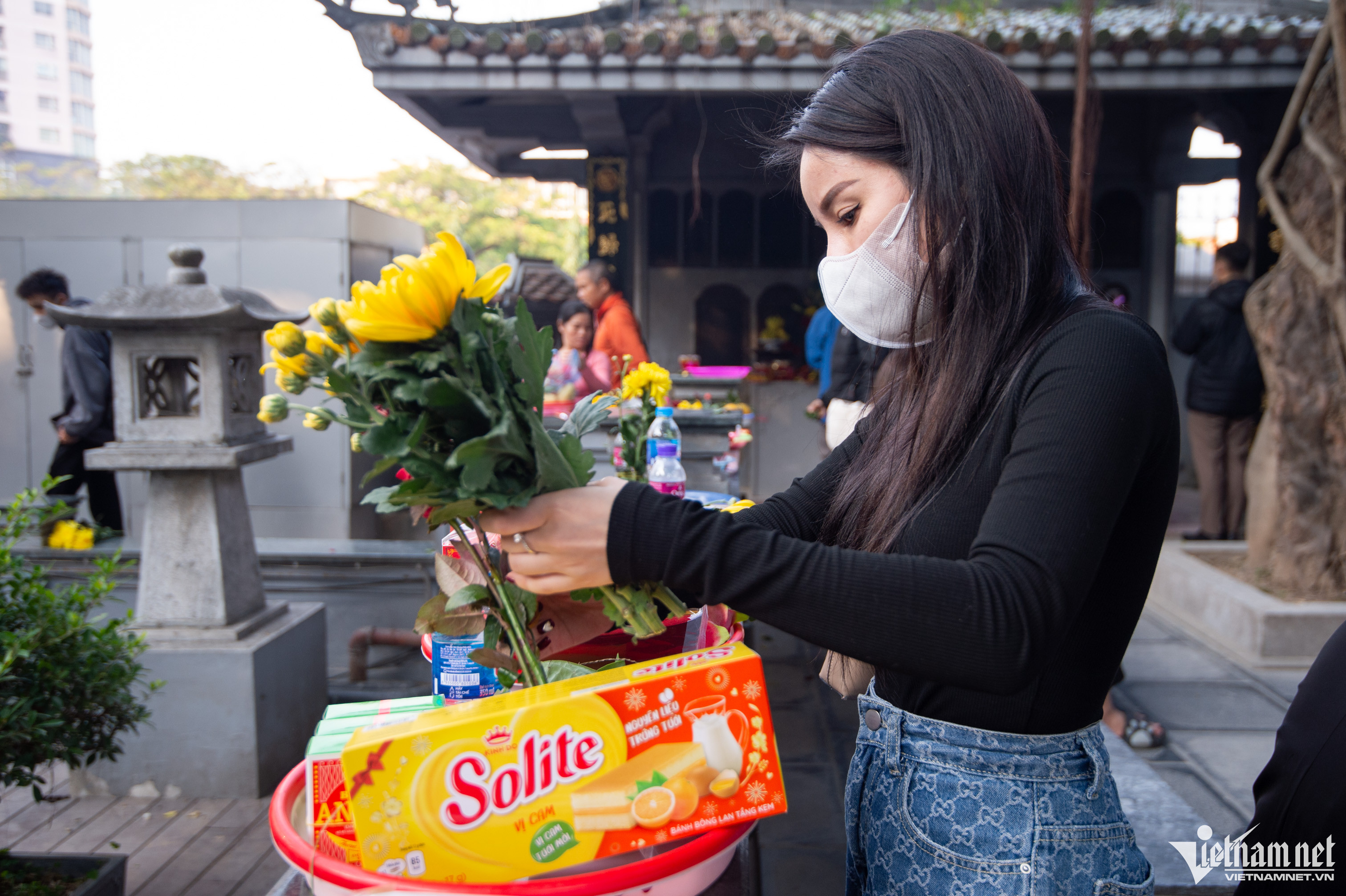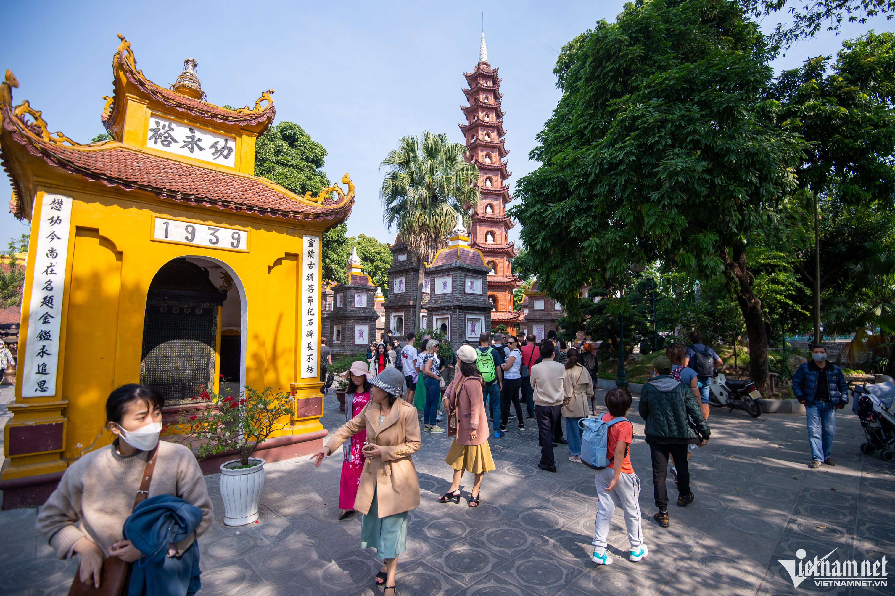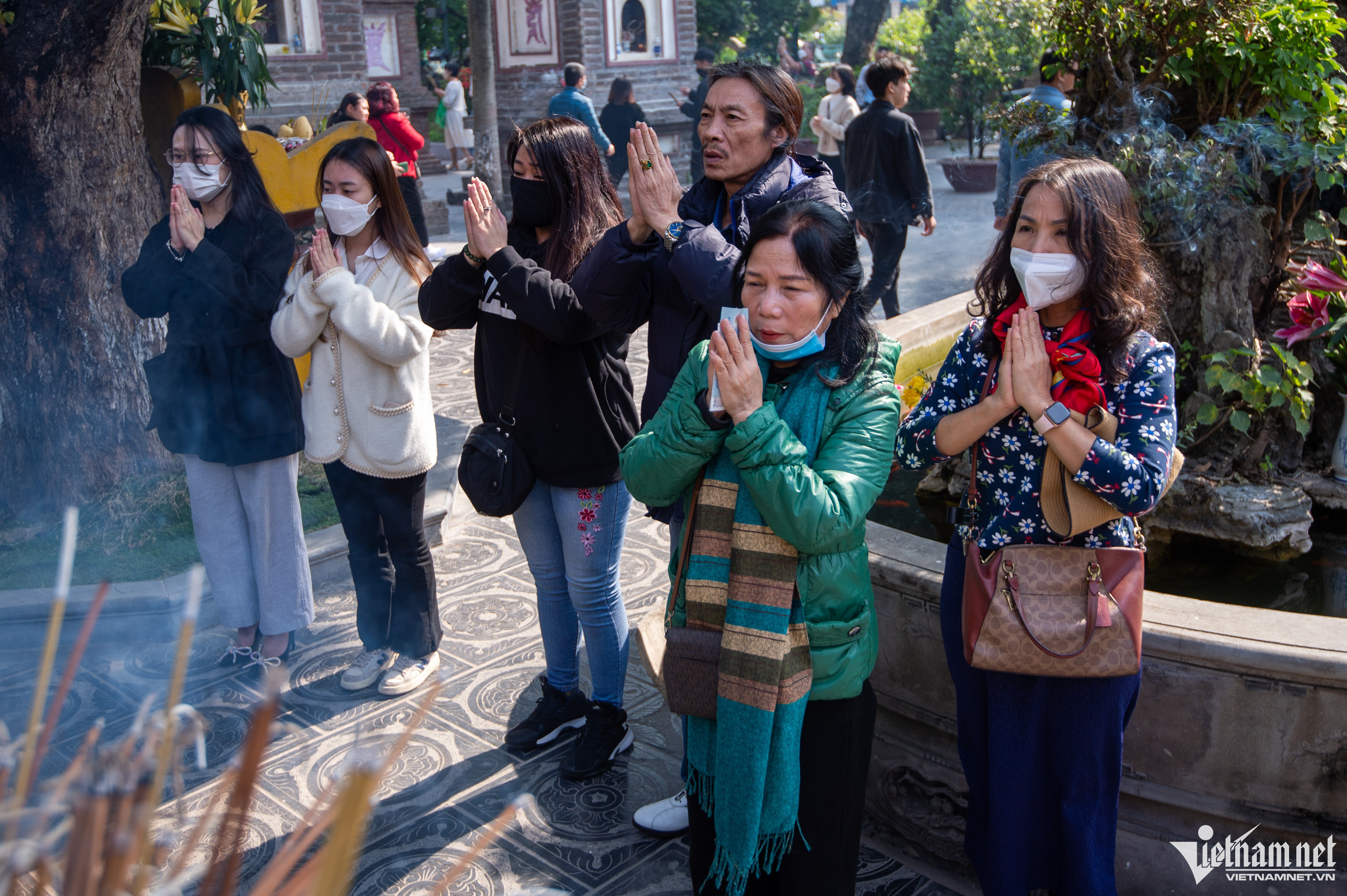 Trưa 23/12 (mùng 1 tháp Chạp), người dân đổ về các đền chùa lễ bái nhân ngày đầu tháng cuối cùng của năm Nhâm Dần.Như thường lệ, Phủ Tây Hồ lại đông nghịt người. Dịp cuối năm, nhiều người dù làm ăn được hay không thời gian qua đều có tâm lý đi lễ tạ.Cả bên ngoài lẫn bên trong phủ đều chật kín người thay nhau khấn vái.Anh Thịnh (làm nghề kinh doanh ôtô) chia sẻ: "Tôi đến Phủ Tây Hồ với mong muốn cầu bình an, sức khỏe, đồng thời cũng cảm ơn ông bà tổ tiên đã phù hộ việc kinh doanh thuận lợi trong năm qua".Toàn bộ sân Phủ chật cứng người giống như ngày đầu tiên của năm mới.Chùa Trấn Quốc (quận Tây Hồ) cũng ghi nhận đông đúc người dân đi lễ trưa 23/12. Nhiều người dân cầu mong những muộn phiền trong năm cũ qua đi, hy vọng những điều tốt đẹp sẽ đến trong năm mới.Chùa Hà (quận Cầu Giấy) cùng ngày cũng có khá đông người đến lễ bái.Chị Hạnh chia sẻ: "Vì làm kinh doanh nên tôi cũng để ý đến chuyện cầu khấn, hàng tháng đi lễ đều đặn. Lần này cũng như những lần trước thôi, tôi vẫn cầu mong sức khỏe, công việc thuận lợi". Khi đến đây, ai cũng trên tay một mâm đồ lễ, giá dao động từ 80.000 đến 100.000 đồng, chủ yếu là hoa quả, bánh kẹo, nhang, tiền vàng.16h30, sau giờ hành chính, nhiều người tiếp tục đổ về chùa Hà để lễ.