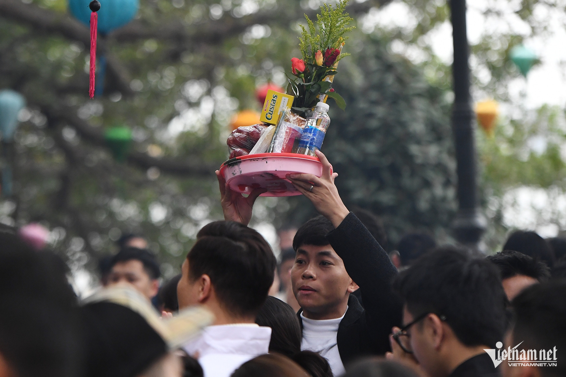 Để tìm được một chỗ trống len vào trong đền đối với nhiều người là rất khó, thậm chí vị trí đặt mâm lễ cũng không có.