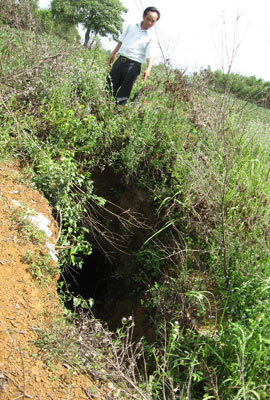 | Miệng hầm địa đạo bị bỏ hoang và sập gần hết. |