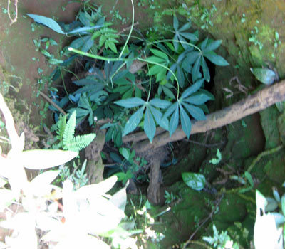 | Giao thông hào đã bị lấp gần hết, bề mặt bị phủ bởi cây sắn. |