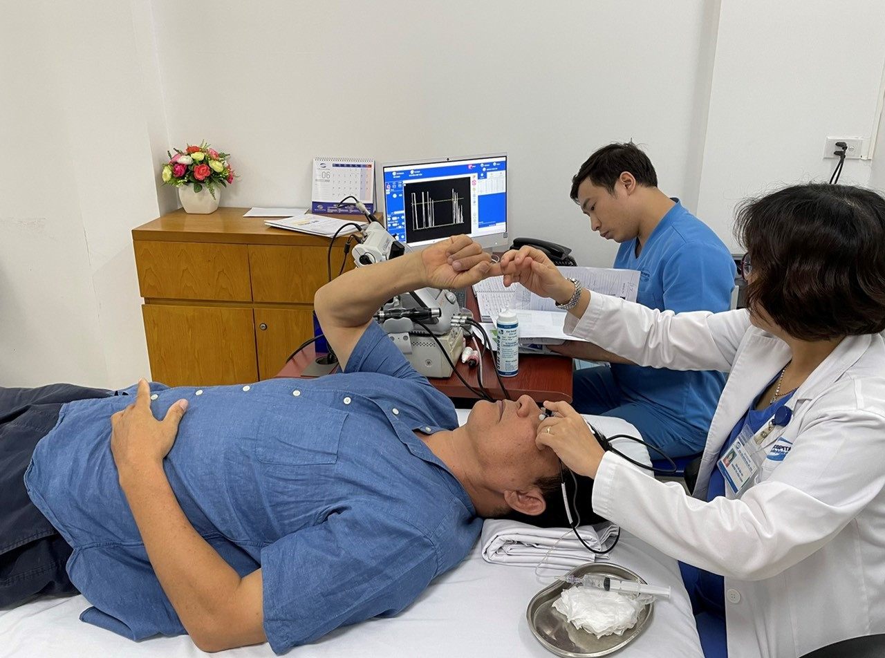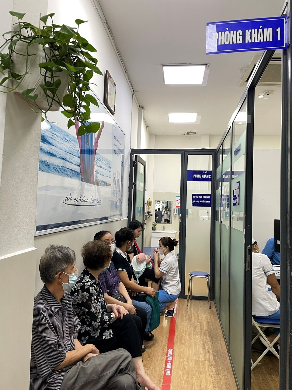 Cho đến tháng 7/2023, chị K.T được giới thiệu đến Bệnh viện Mắt kỹ thuật cao Hà Nội (Hitec) và được chẩn đoán: mắt trái đục thủy tinh thể, đứt chân mống mắt rộng sau chấn thương.