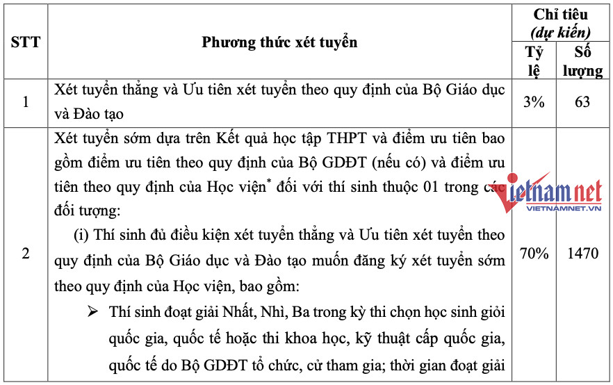 Trong trường hợp đủ điều kiện xét tuyển nhiều phương thức, thí sinh được đăng ký đồng thời nhiều phương thức trên hệ thống tuyển sinh của Học viện và phải sắp xếp nguyện vọng theo thứ tự ưu tiên từ cao xuống thấp (nguyện vọng 1 là nguyện vọng cao nhất).